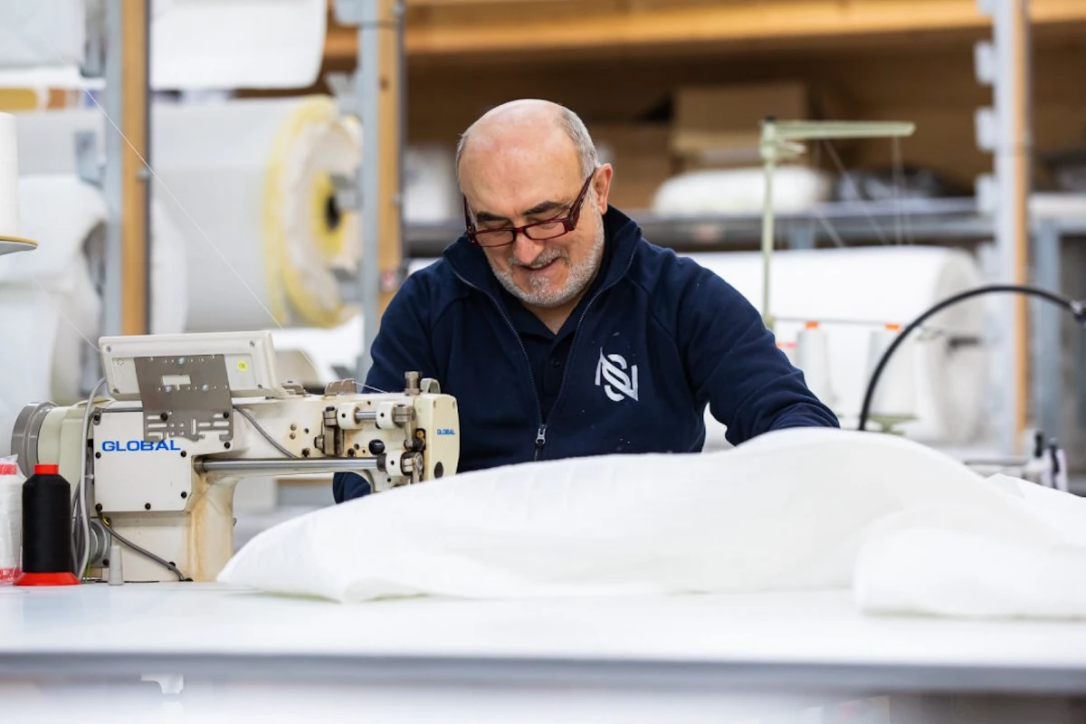 Wij maken onze matrassen in eigen atelier, van het snijden van schuimen en pocketveringkernen tot het stikken van de matrashoes. De lagen worden verlijmd met duurzame lijm op waterbasis, volledig veilig voor mens en milieu.